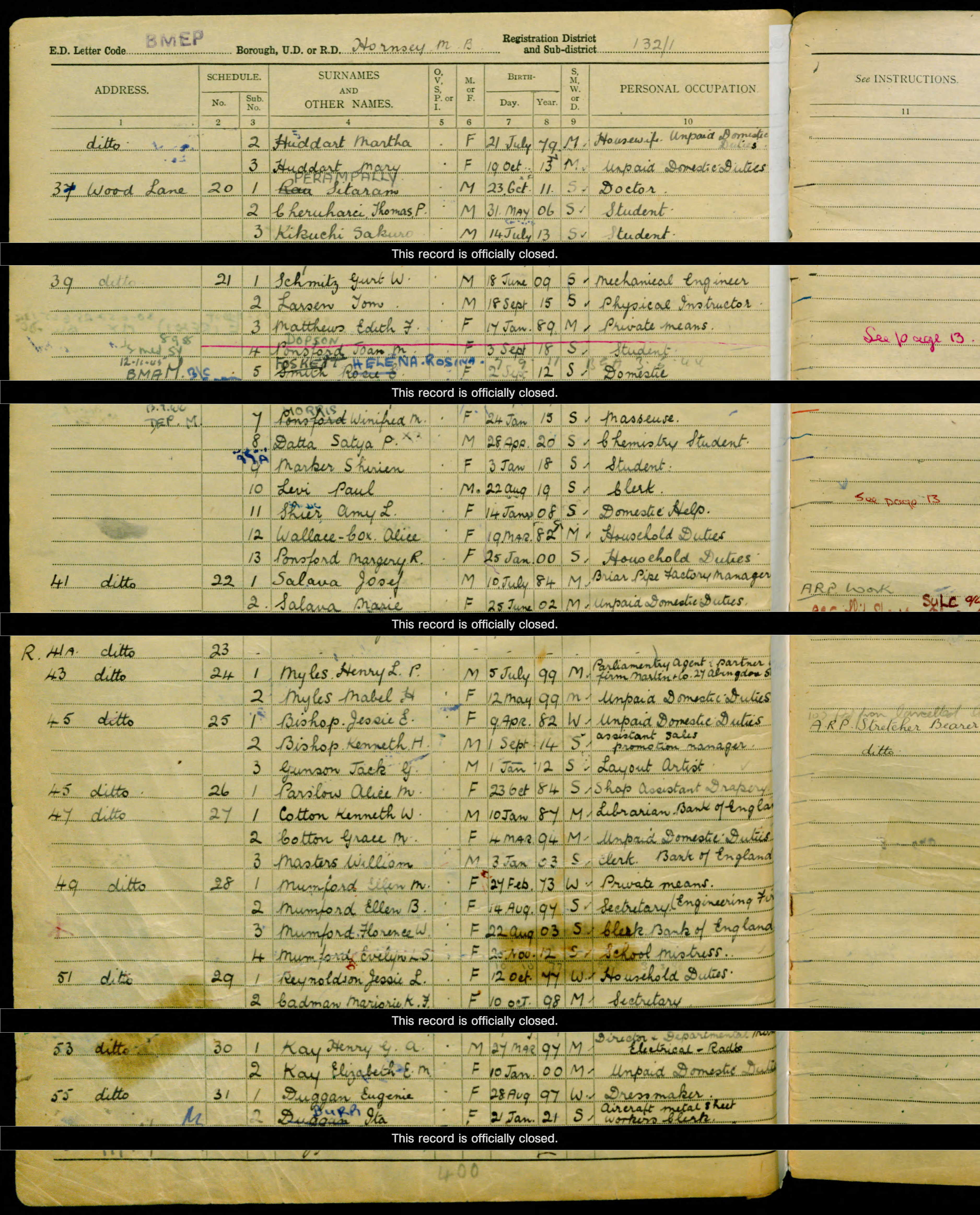 1939 Register: Alice Shields; birth 19 Mar 1882; Line 18, Scheduke 21:12; ED Bmep; Hornsey; 132/1