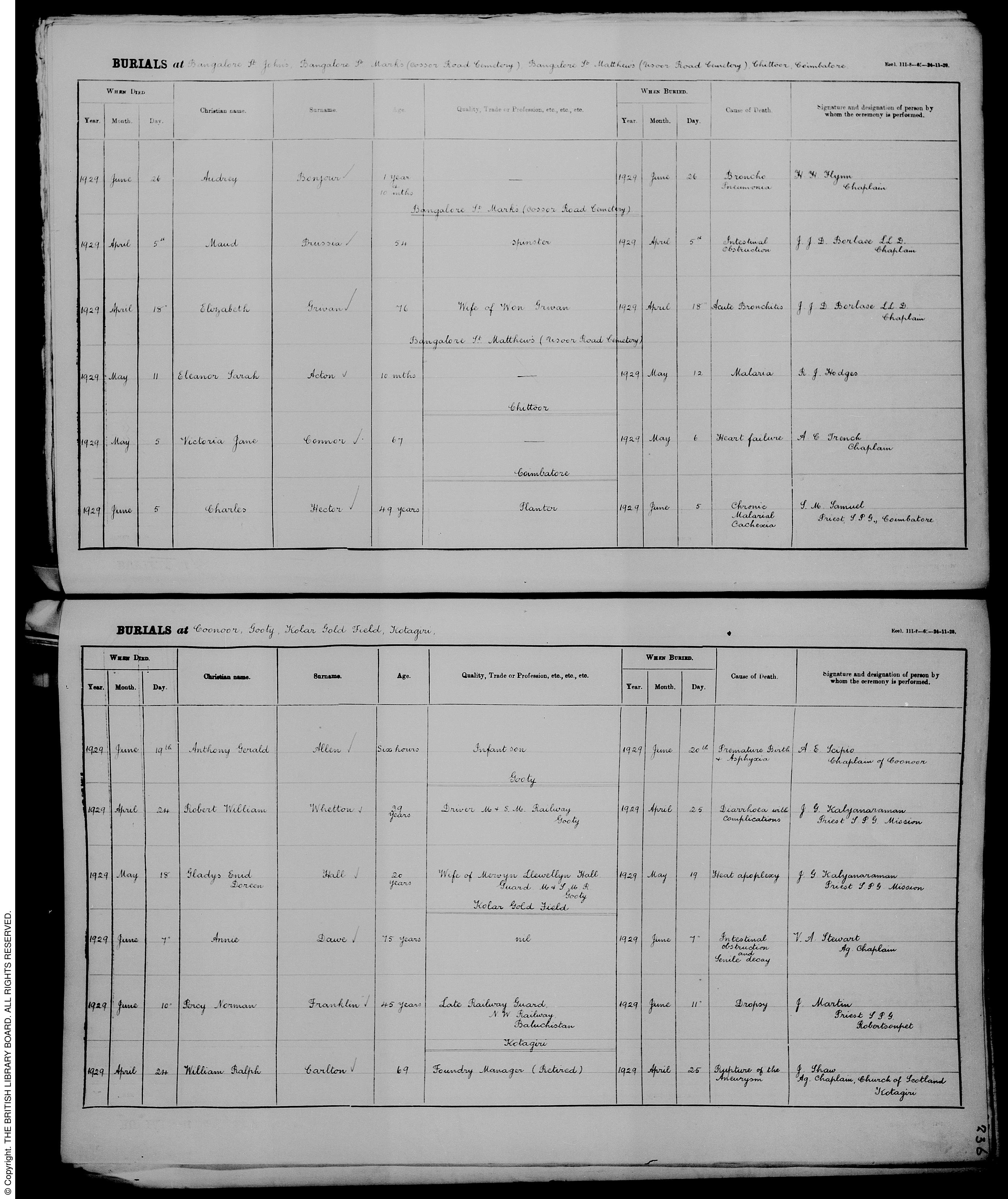 Death of Maud Eleanor Prussia; Birth 1875; Burial 5 Apr 1929 St Mark Bangalore; Archive N-2-145 Page 236