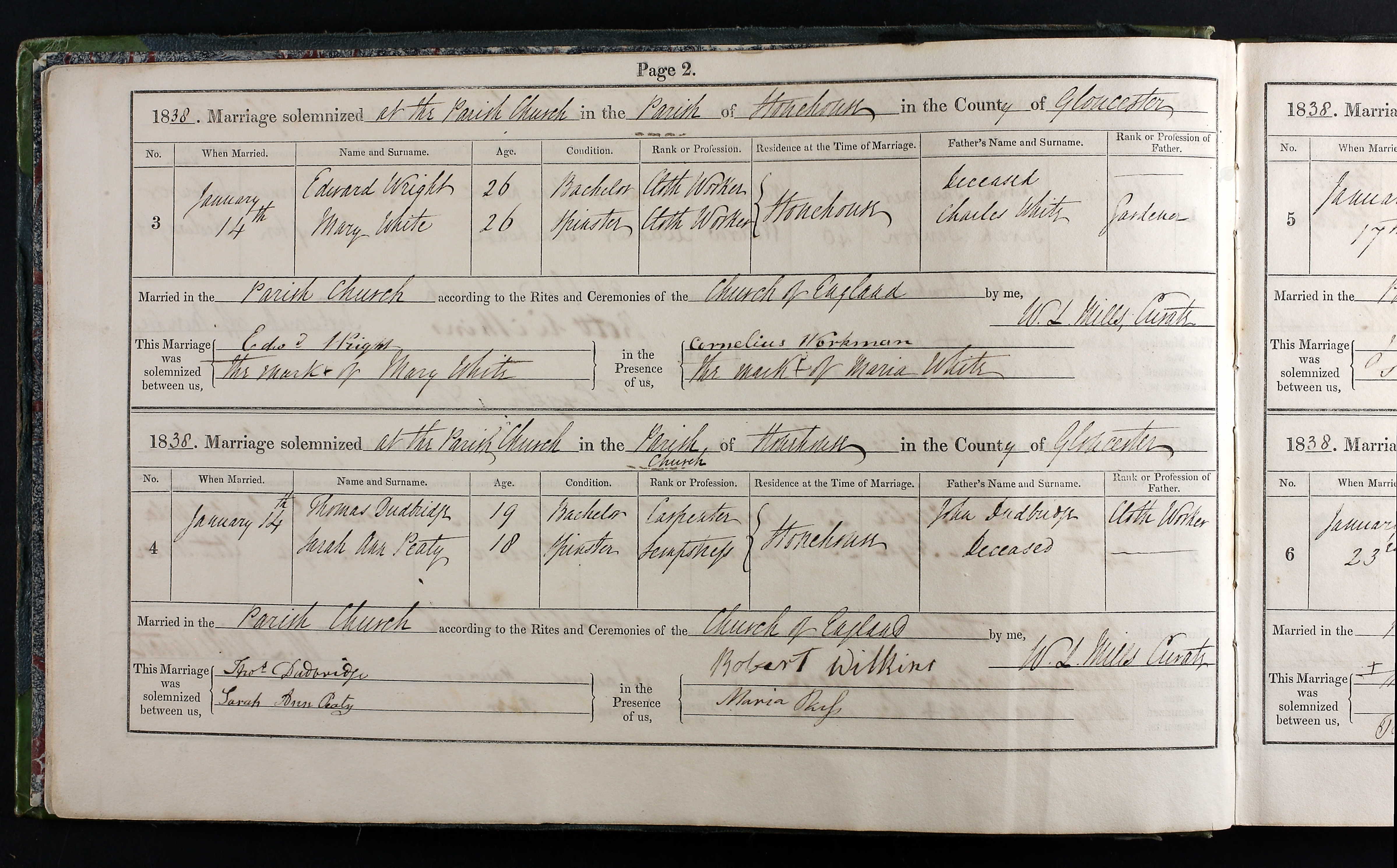 Marriage of Thomas Dudbridge and Sarah Ann Peaty; father John Dudbridge, cloth worker