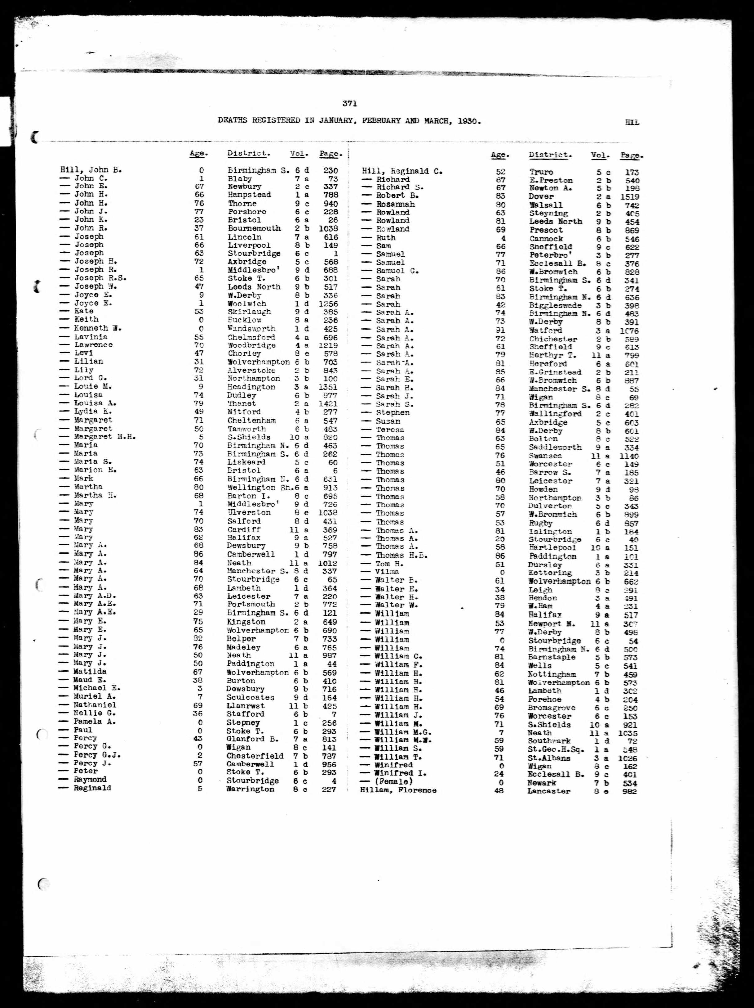 Death of Thomas H B Hill; Paddington, London; Volume 1a Page 101