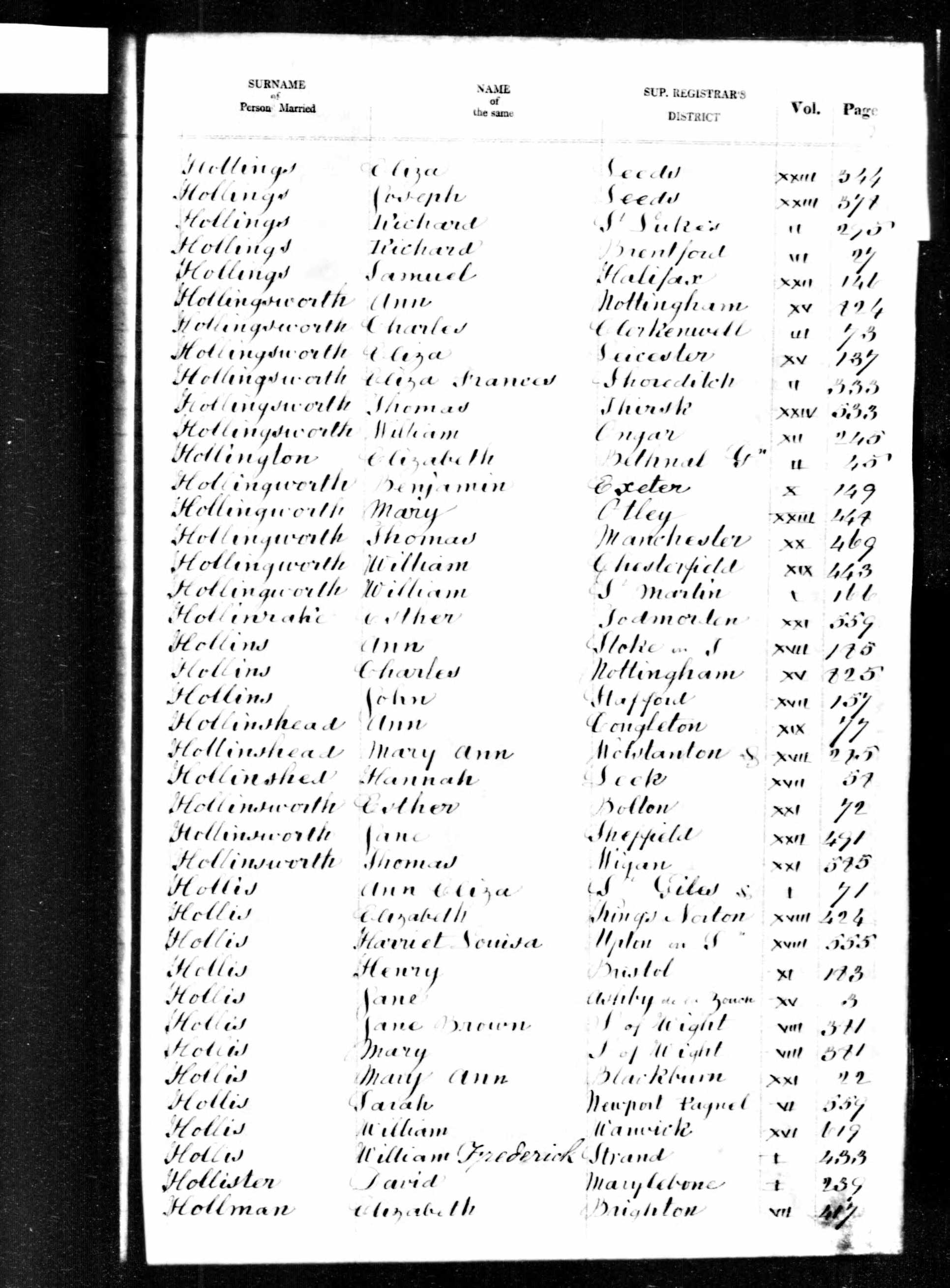 Marriage of Jane Brown Hollis and James Timothy Hatch: Isle of Wight; Volume 8 Page 381