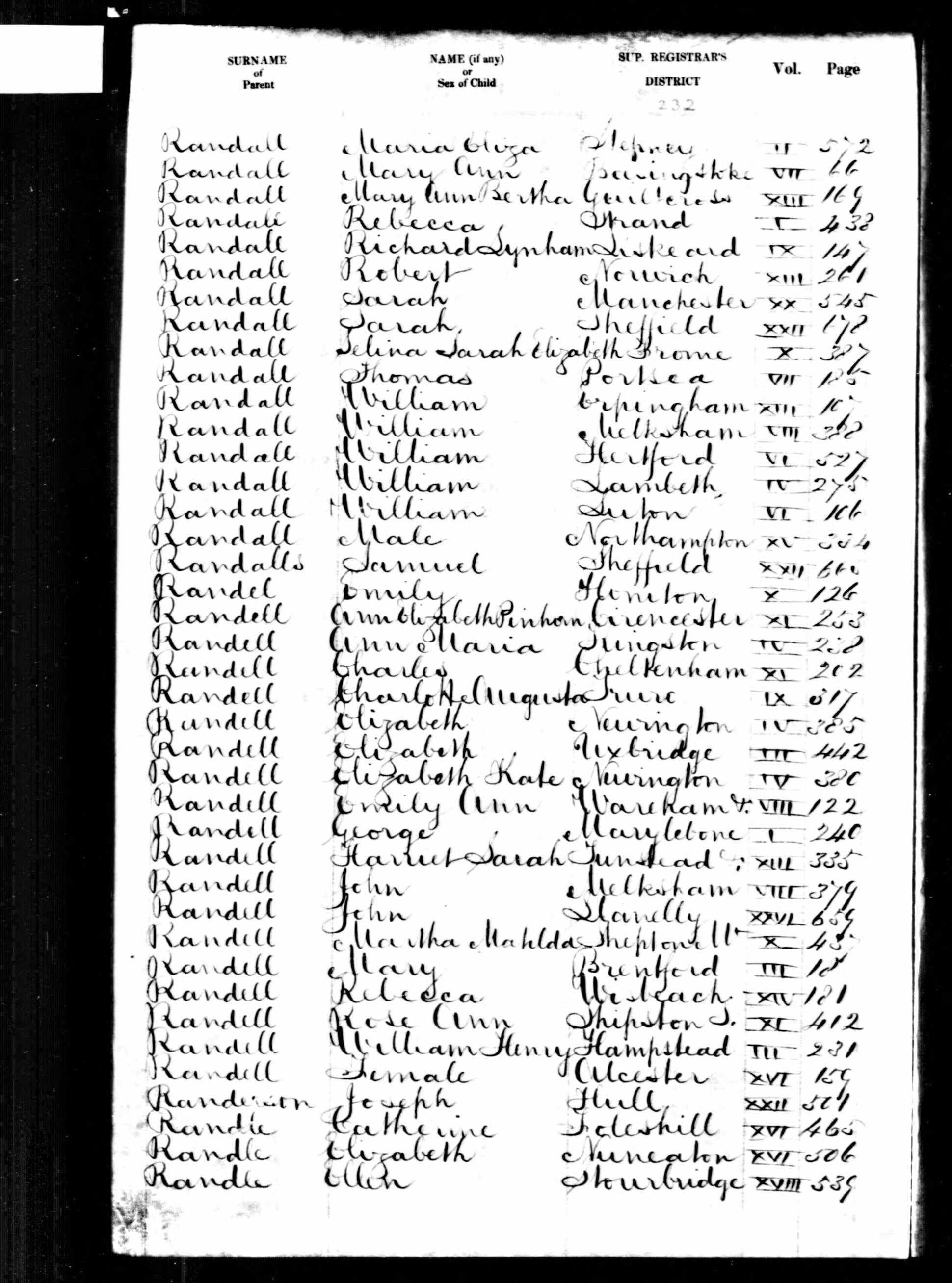 Birth of Ann Elizabeth Pinhorn Randell; Cirencester: Volume 11, Page 253