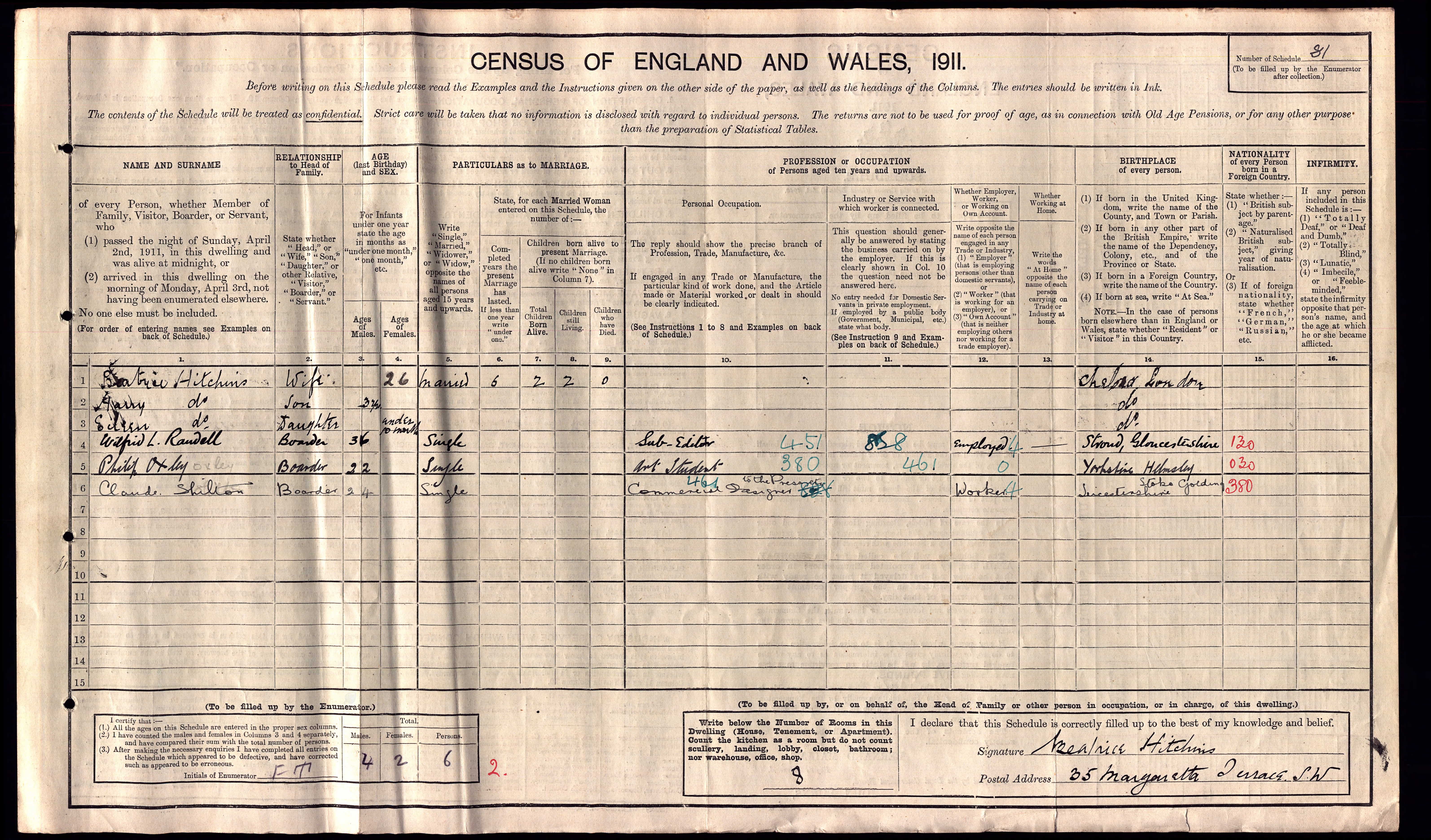 1911 Census - Wilfrid Lawson Randell: Chelsea; Class: RG14; Piece: 402