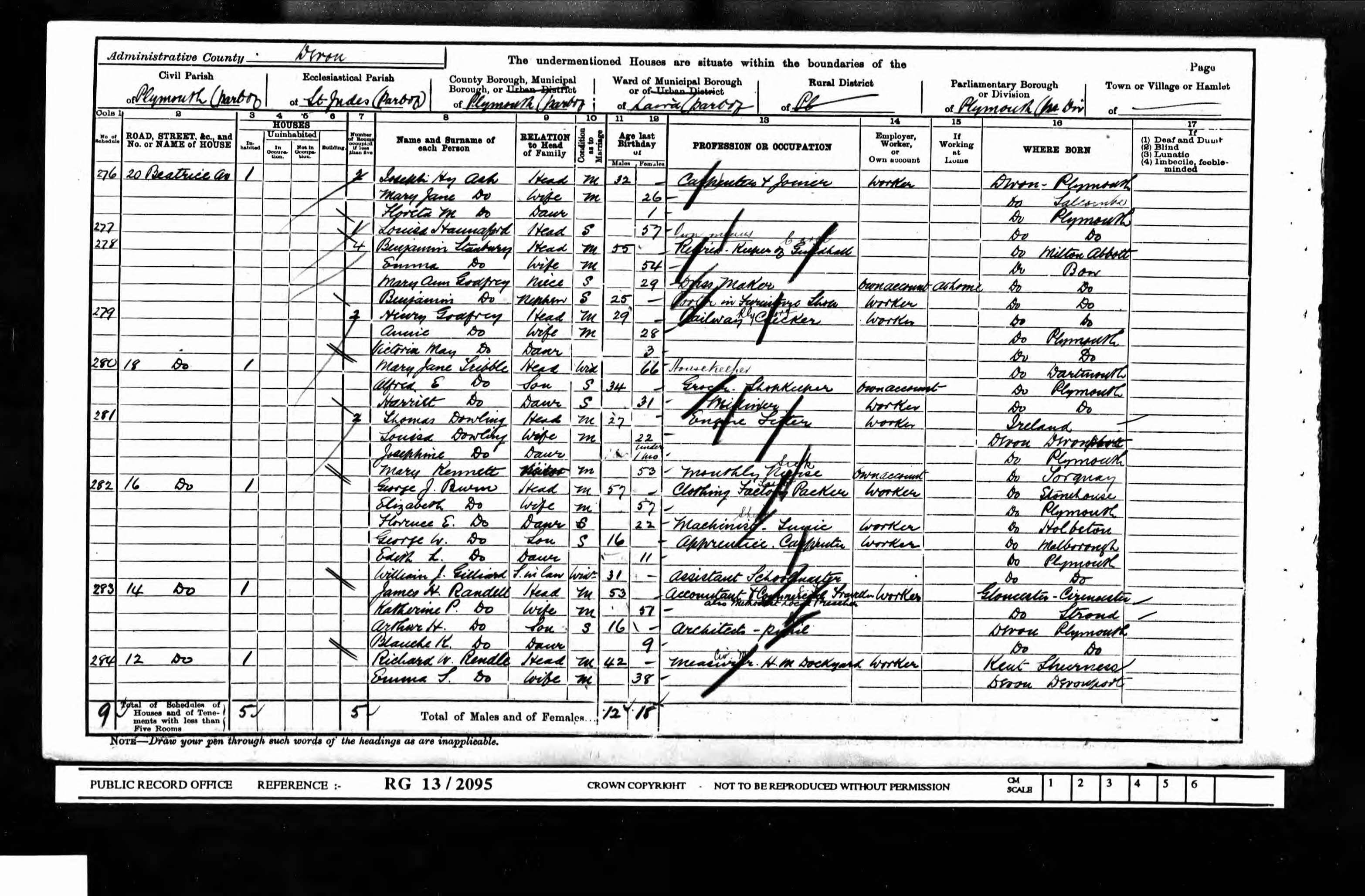 1901 Census - Arthur Hollis Randell (Architect's pupil), father James, mother Katherine, and sister