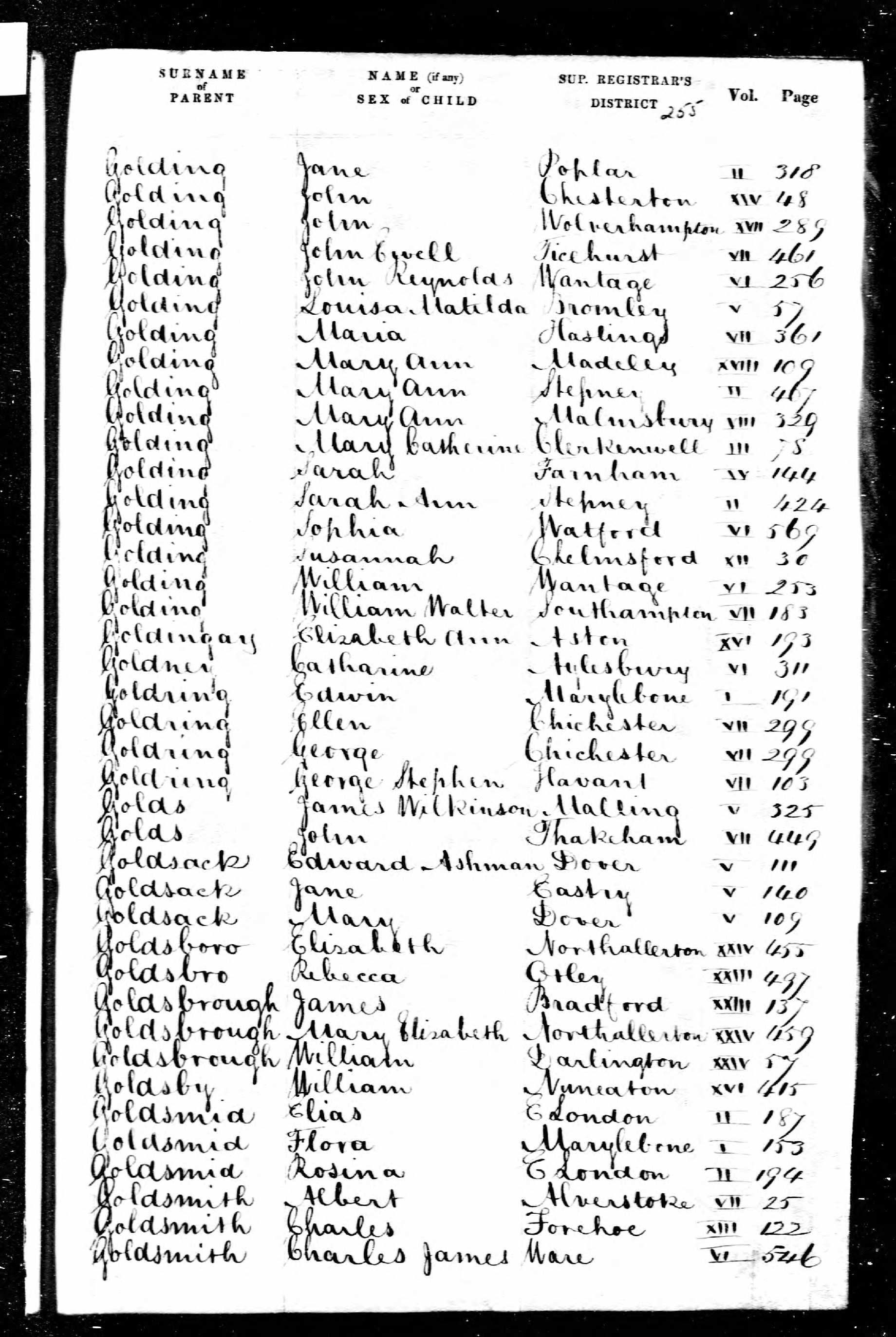 Birth of Charles James Gouldsmith; Ware, Hertfordshire; Volume 6, page 546
