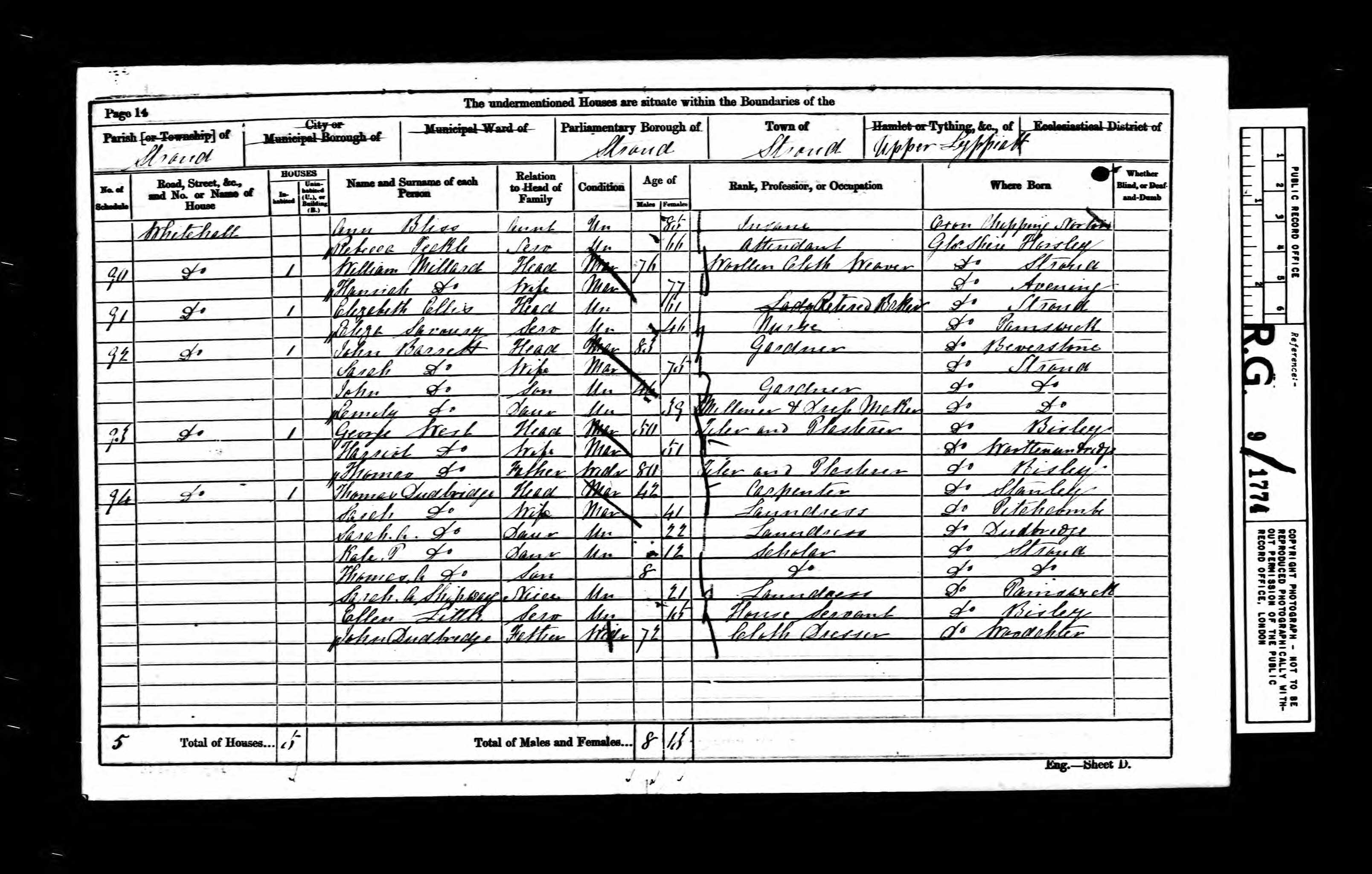 1861 Census - Thomas Dudbridge, wife Sarah, three children, niece, father and servant; Stroud, Class: RG9; Piece: 1774; Folio: 55; Page: 14; GSU roll: 542866