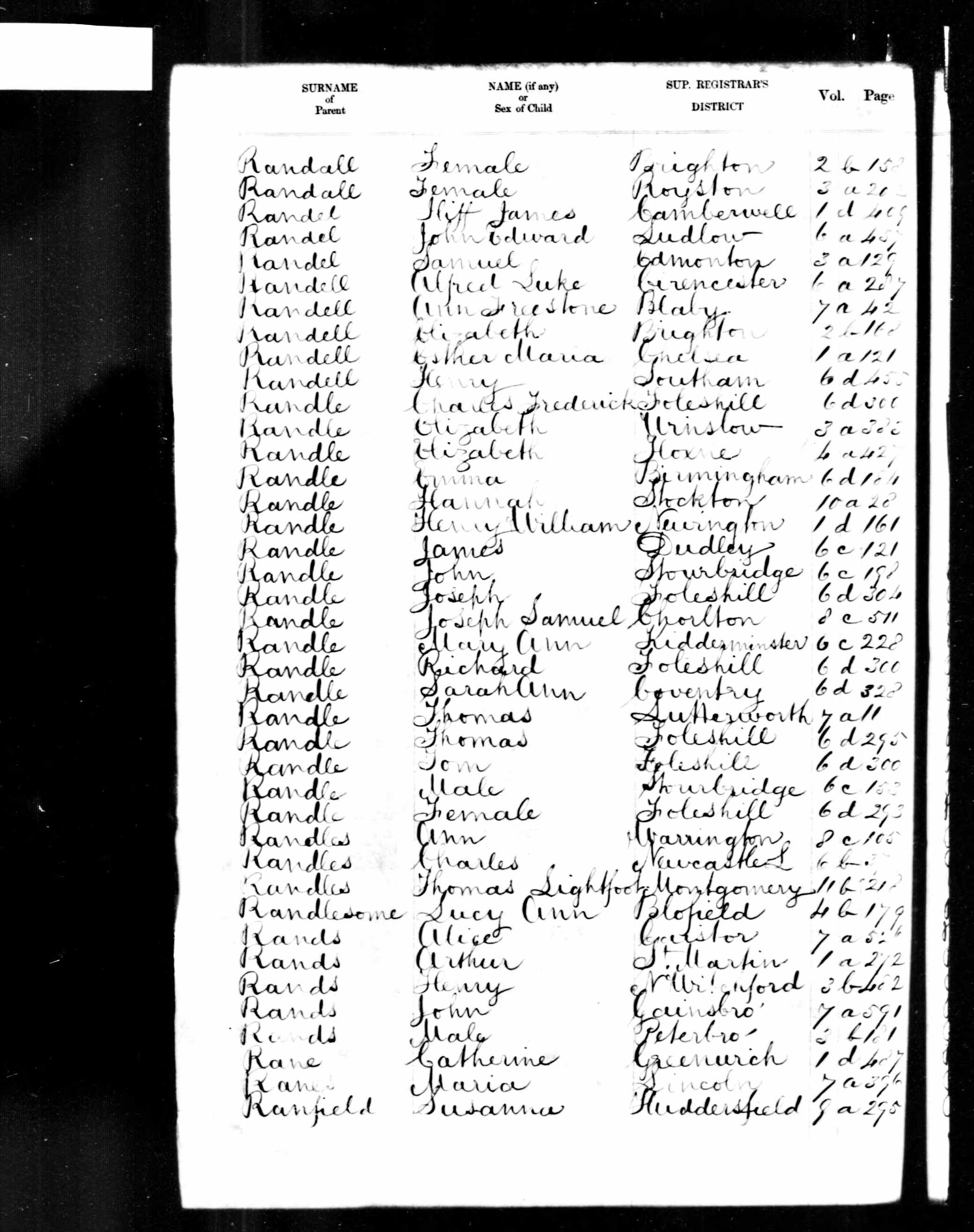 Birth of Alfred Luke Randell; Vol 6a, page 287.