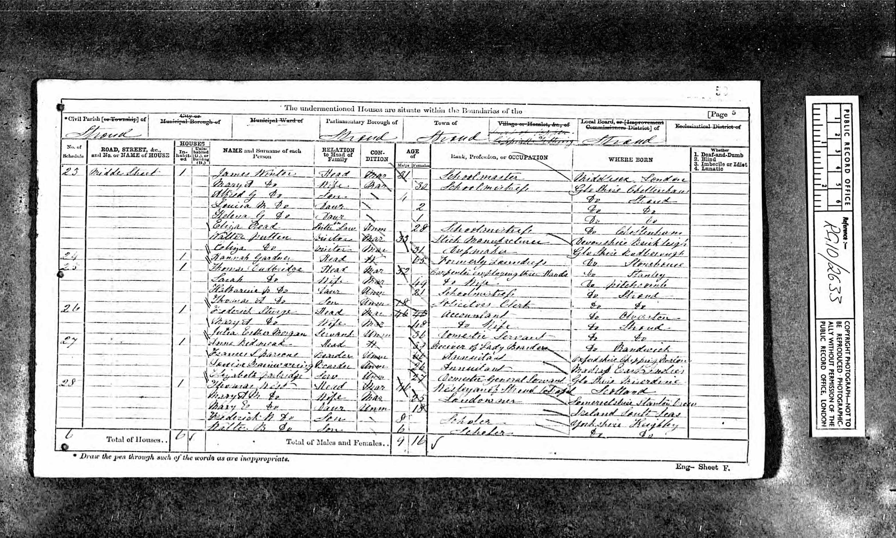 1871 Census - Katherine P (schoolmistress), with father Thomas, mother Sarah and brother Thomas