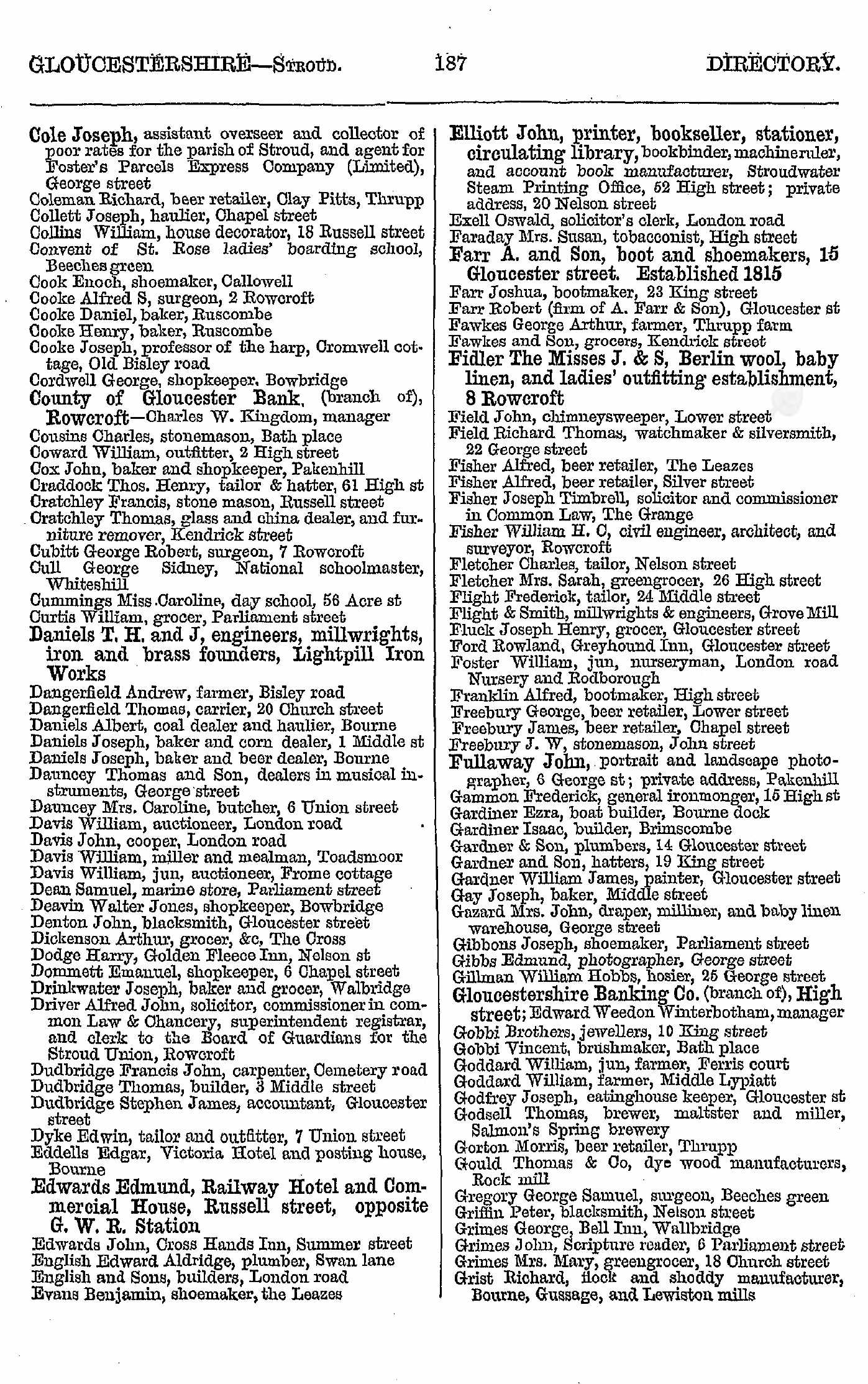 Thomas Dudbridge, builder; Gloucestershire, 1880 Directory, 1880 Residence Year; 3 Middle Street, Stroud
