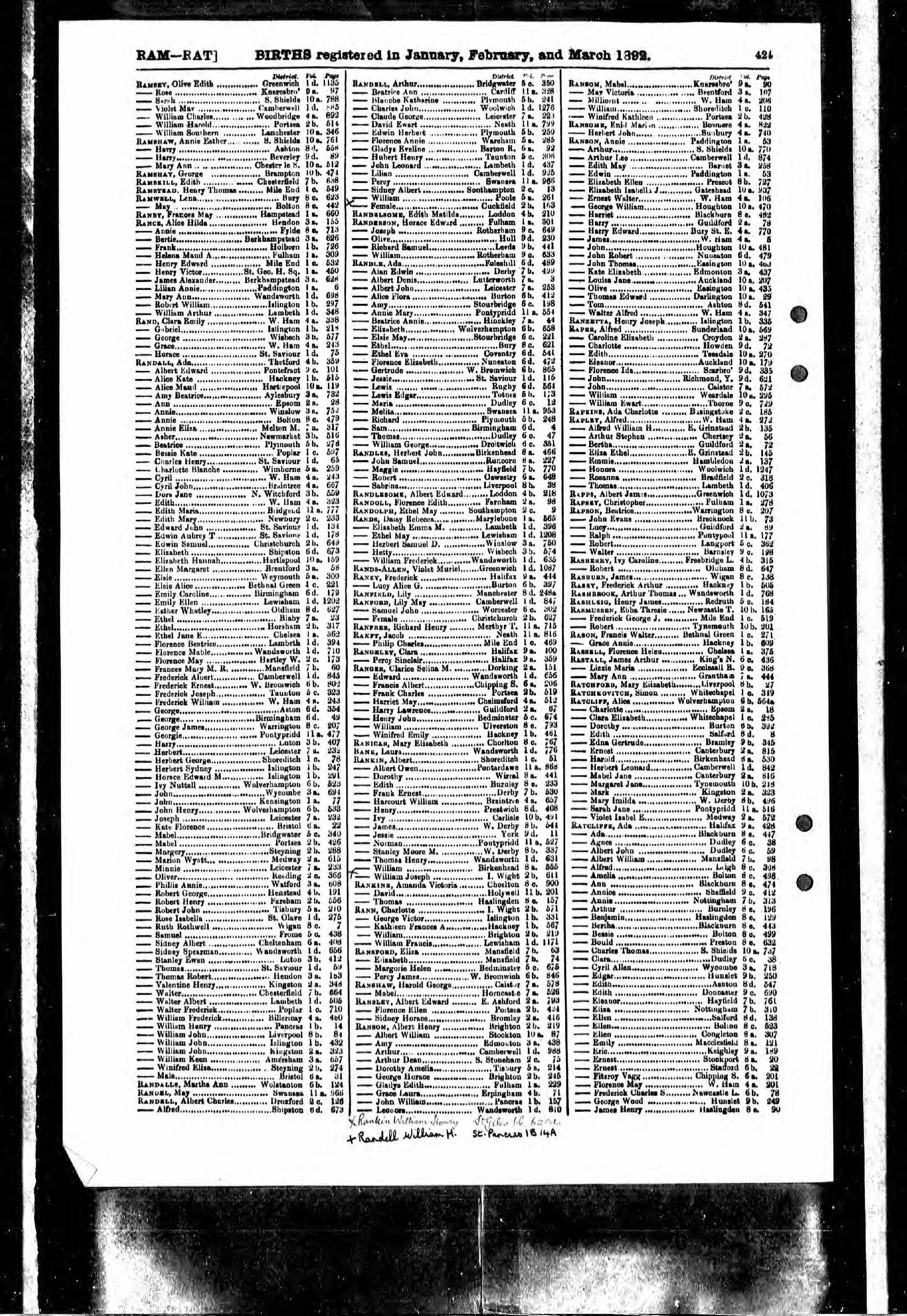 Birth of Blanche Katherine Randell: Plymouth; Volume 5b Page 241