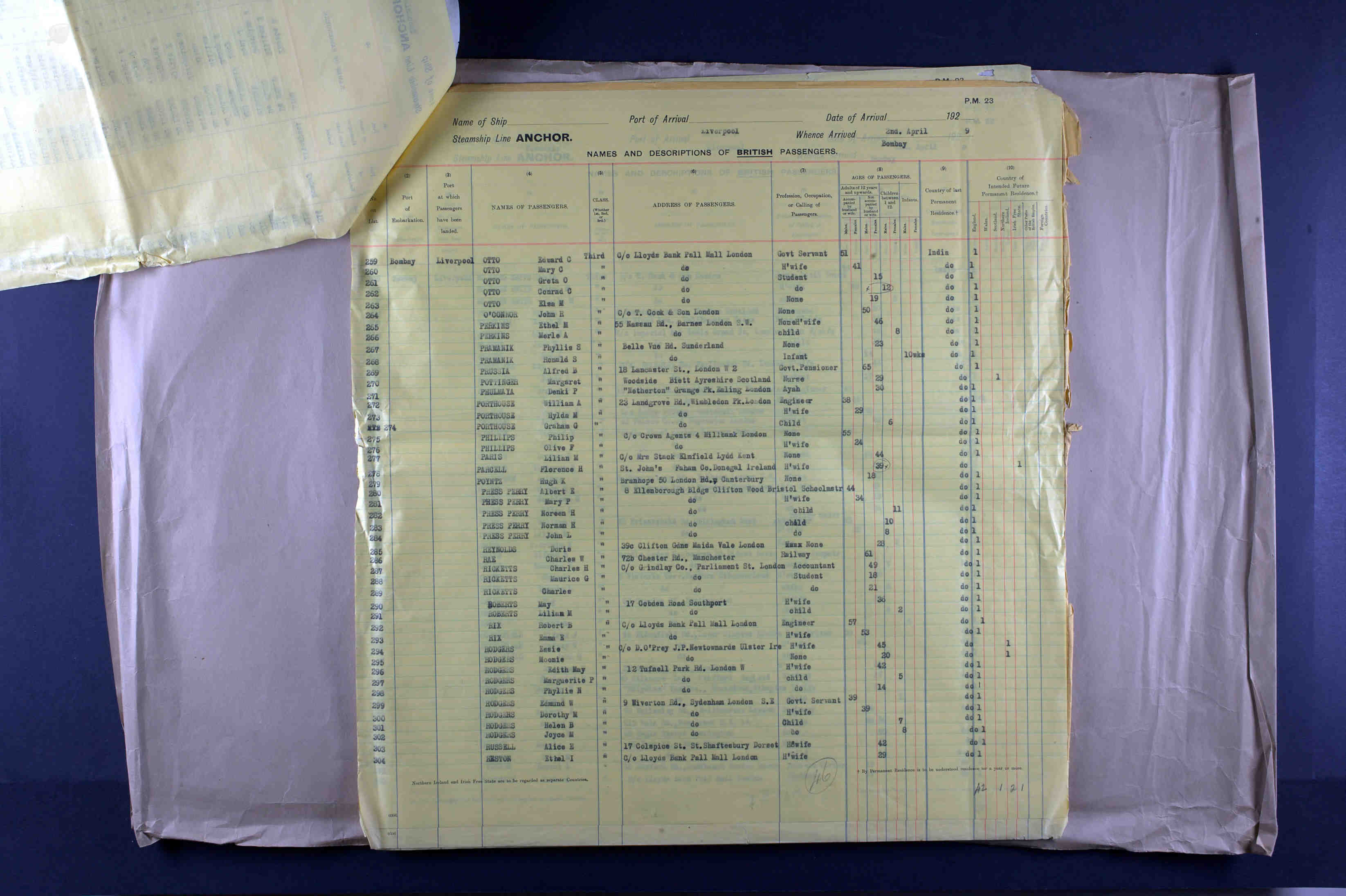 Alfred Bates Prussia, arrived in Liverpool from Bombay; SS Tuscania, Anchor Line, 146307