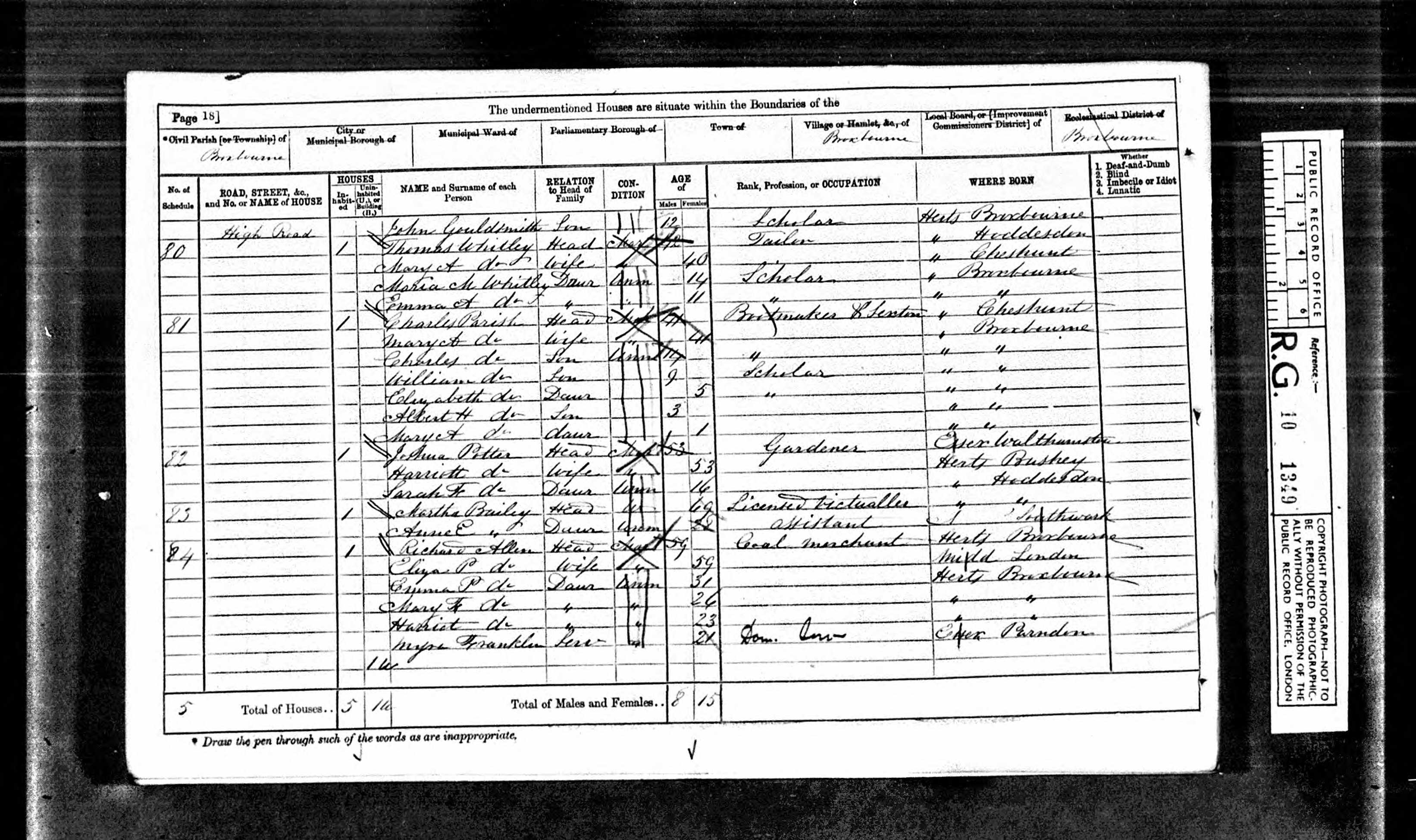 1871 Census - Charles Gouldsmith (Miller Foreman), wife Grace, son John; Broxbourne, Herts; Class: RG10; Piece: 1349; Folio: 30; Page: 17; GSU roll: 828289.