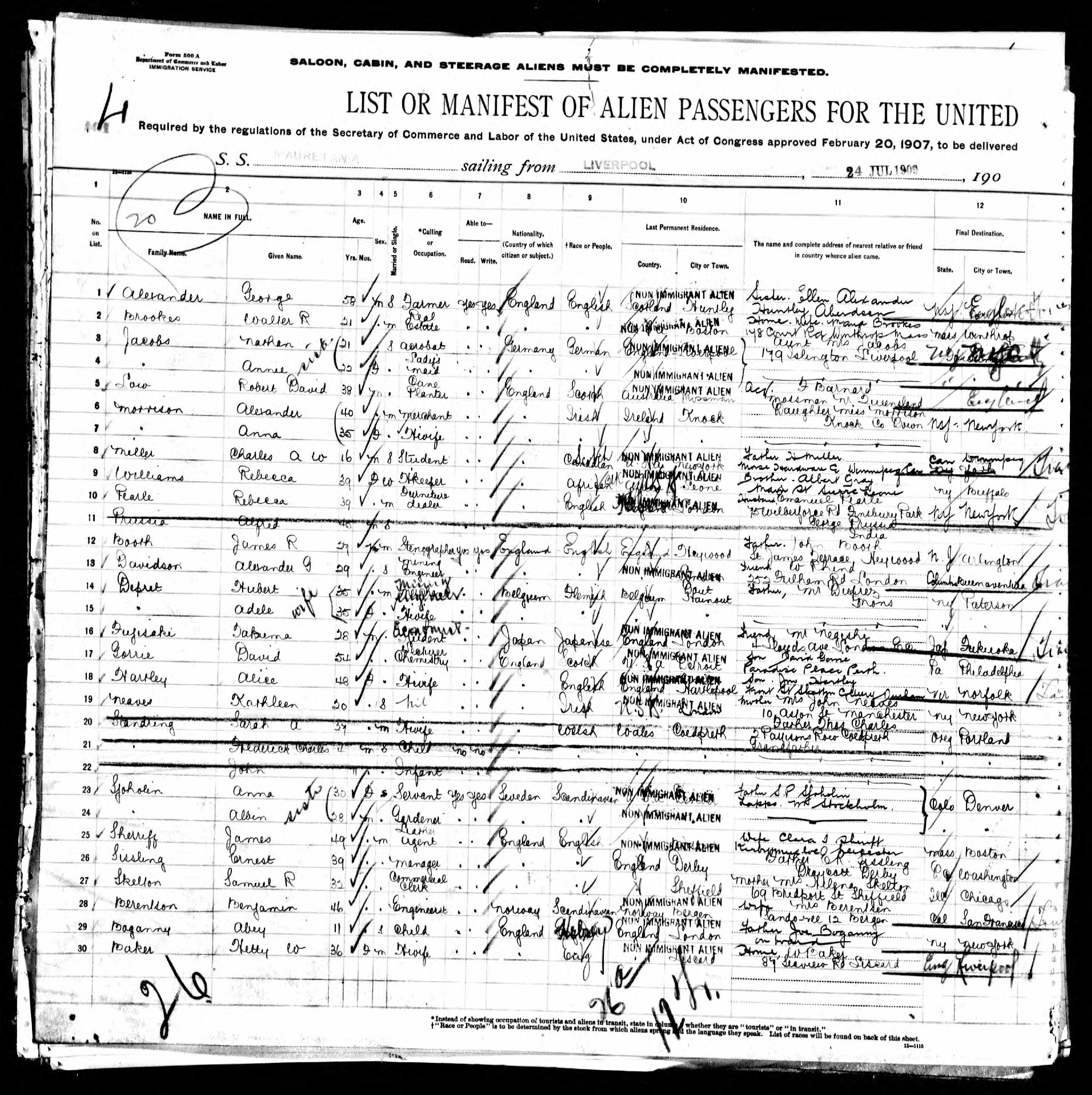 Alfred Bates Prussia, arrival in New York, 1909: Microfilm Serial: T715, 1897-1957; Line: 11; Page Number: 105