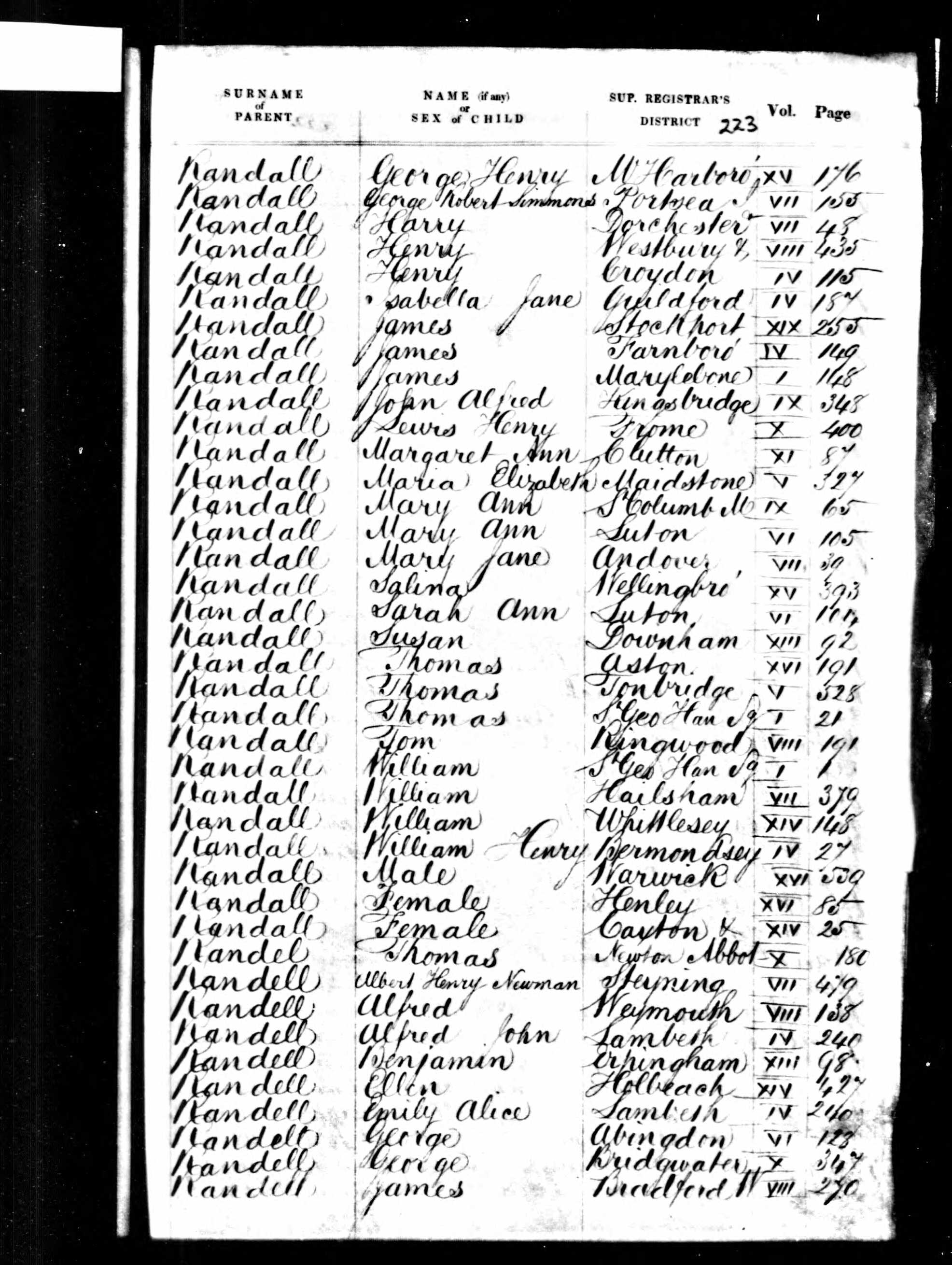 Birth of James Hollis Randell: Cirencester; Voume 11 Page 245