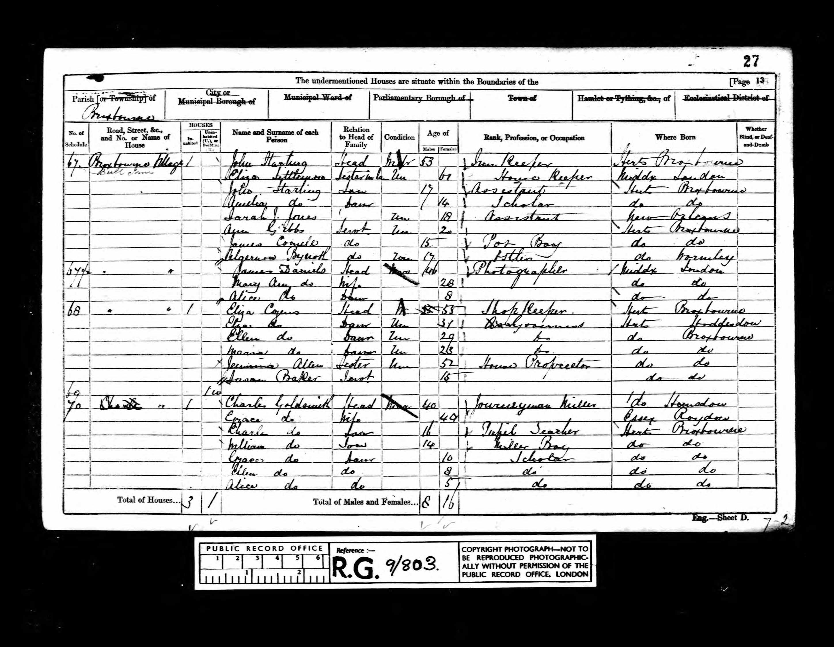 1861 Census - Charles Gouldsmith (Journeyman Miller), wife Grace and six children; Ware, ED 2D, Household schedule 70