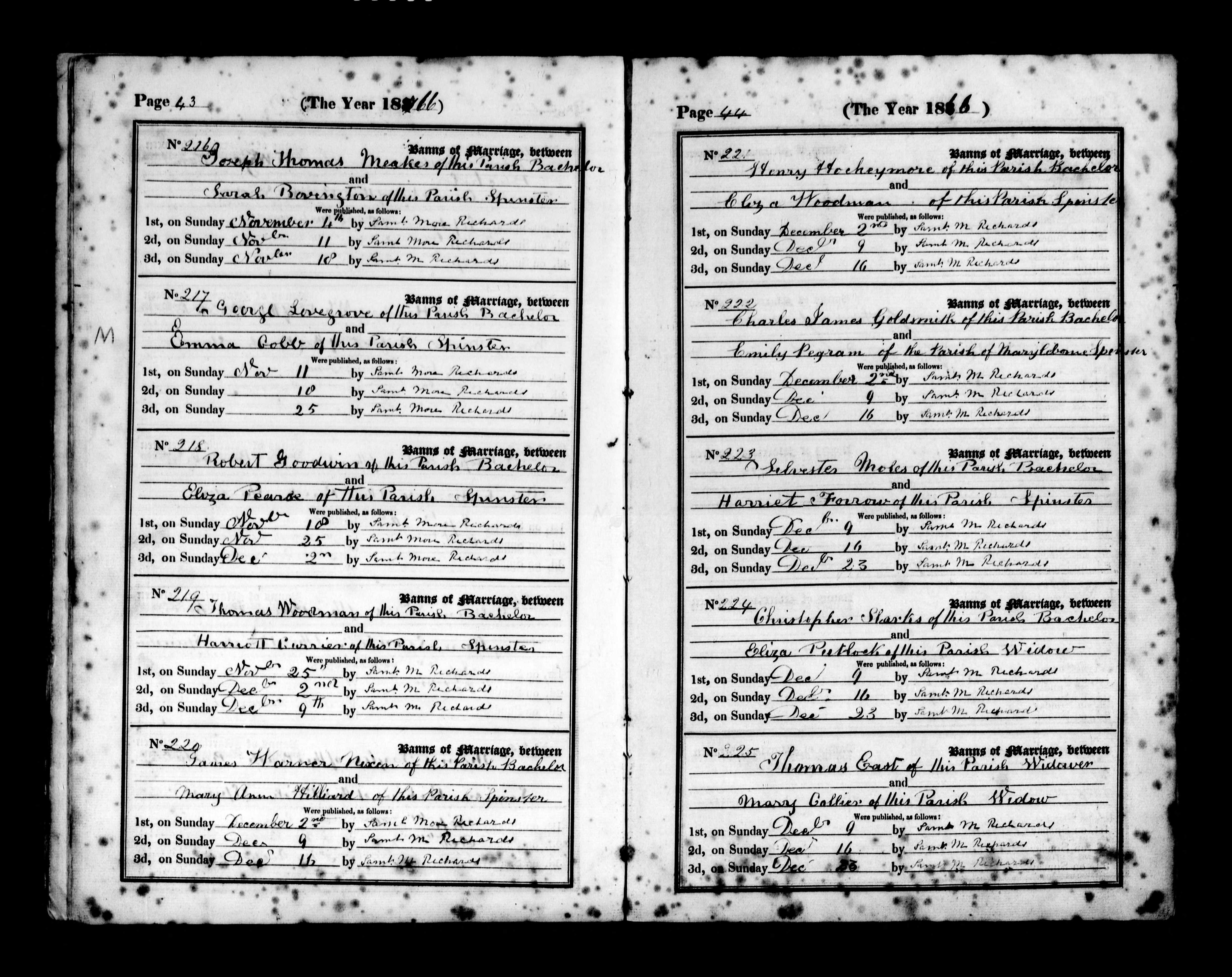Charles James Gouldsmith - banns read at St George's Parish Church; Spouse Emily Pegram