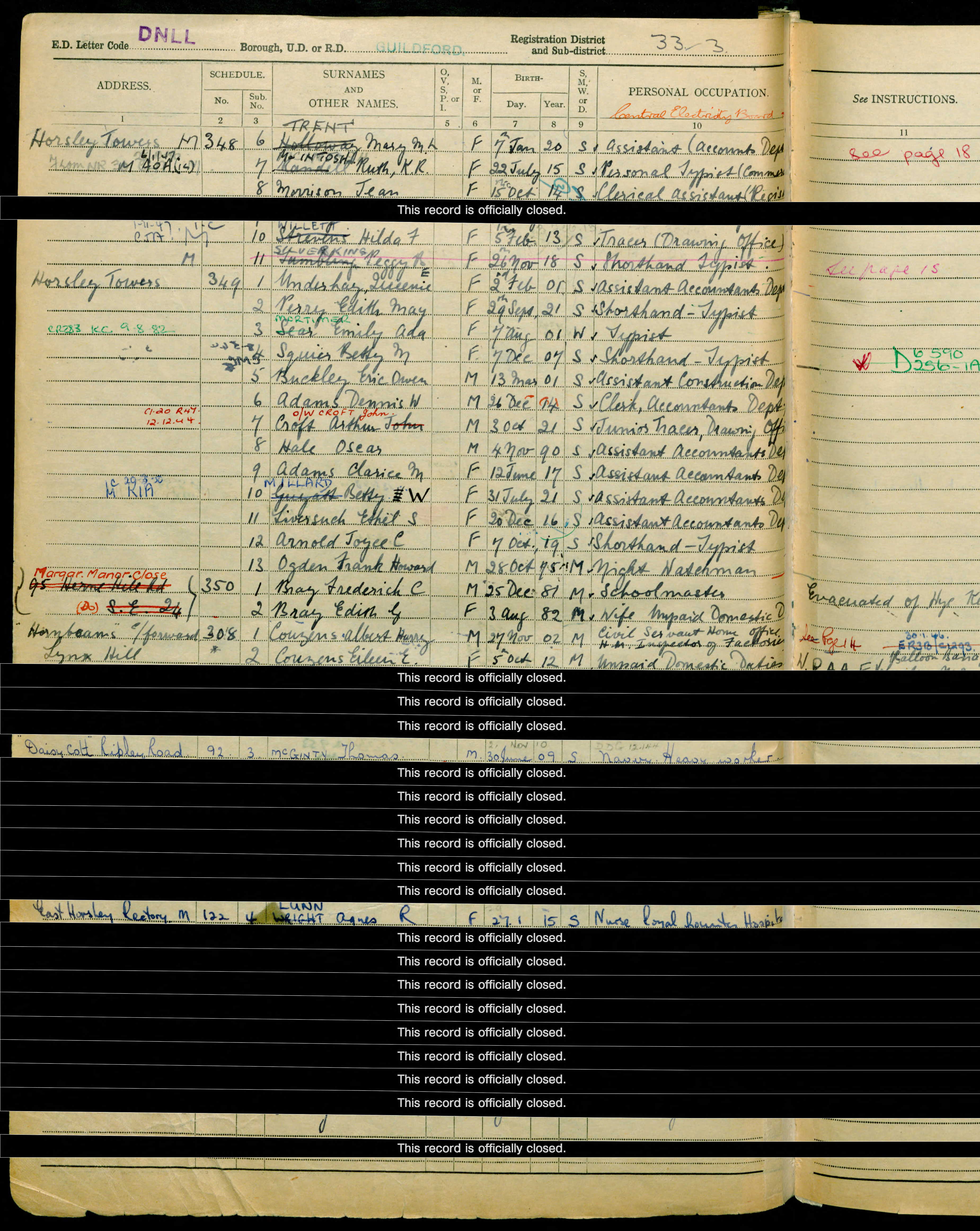 1939 Register - Ruth Katherine Rebecca Randell: Guildford; Line 2, Schdule 347/7; ED DNLL; Reg District 33-3; Birth 22 Jul 1915