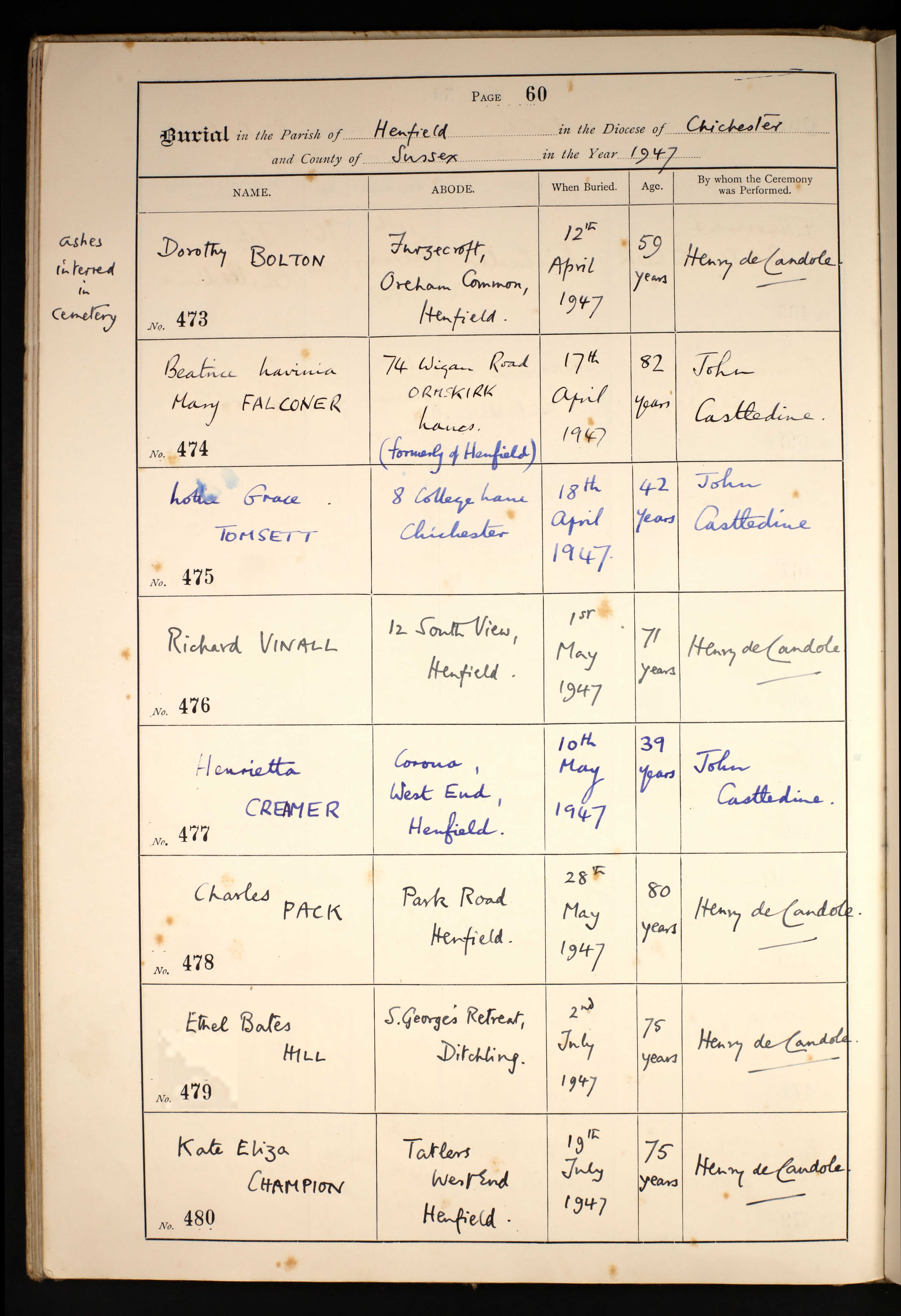 Burial of Ethel Bates Prussia, Henfield Parish: Ref Par 100/1/5/4
