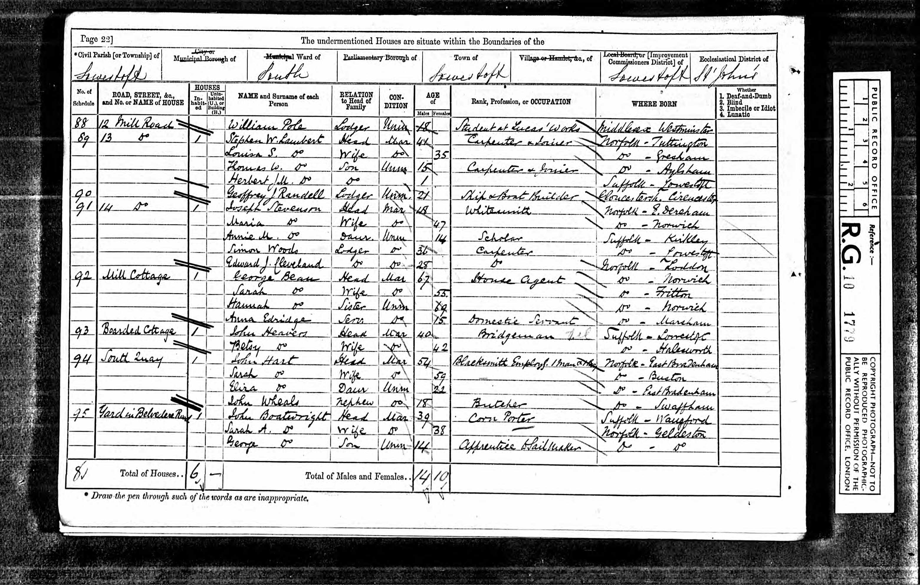 1871 Census - Geoffrey John Randell: Lowestoft: Class: RG10; Piece: 1779; Folio: 14; Page: 22; GSU roll: 830827.