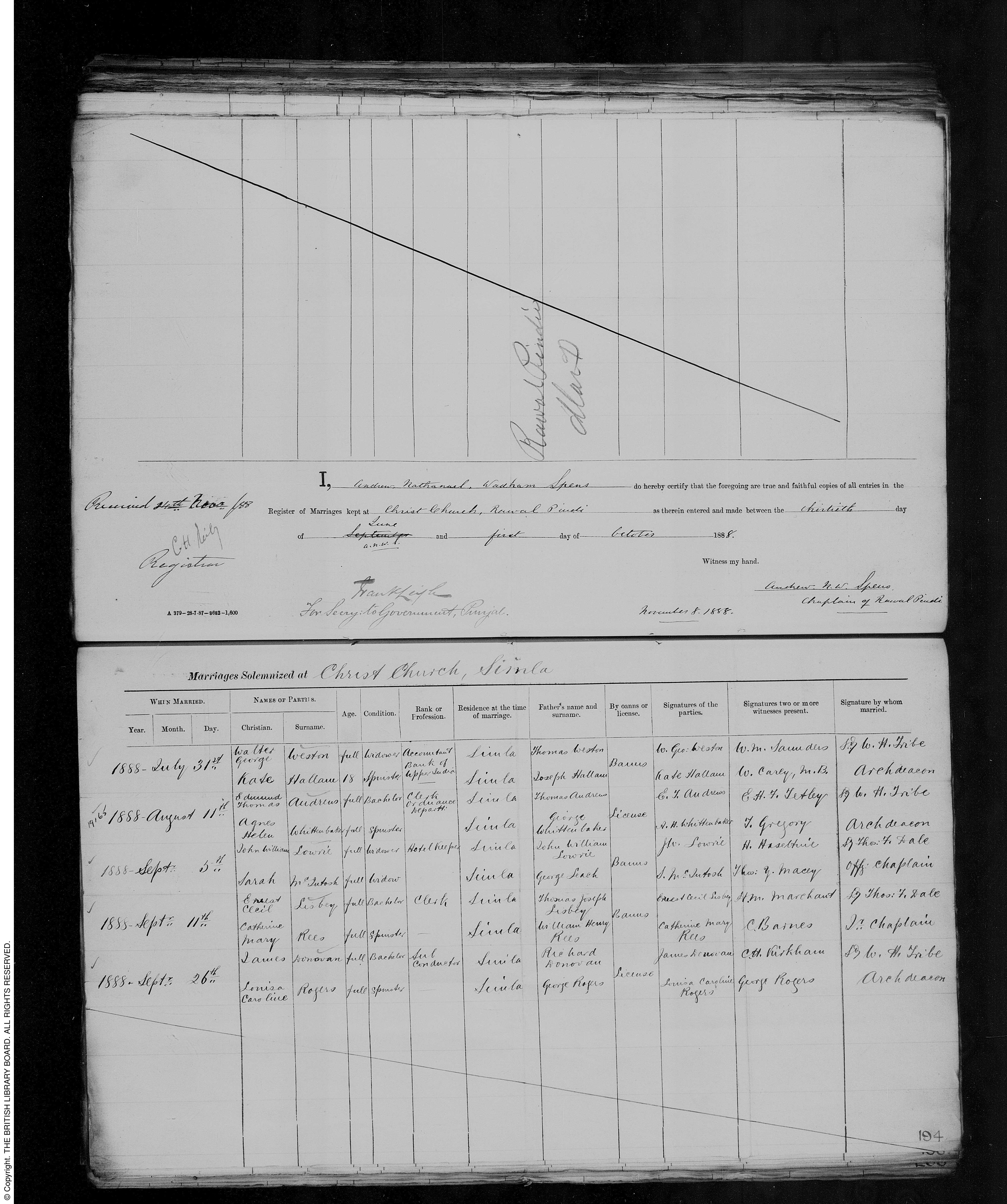 Marriage of Sarah Leach and John William Lowrie; Groom's father - John William Lowrie; Bride's father - George Leach; Archive N-1-205 Folio 194