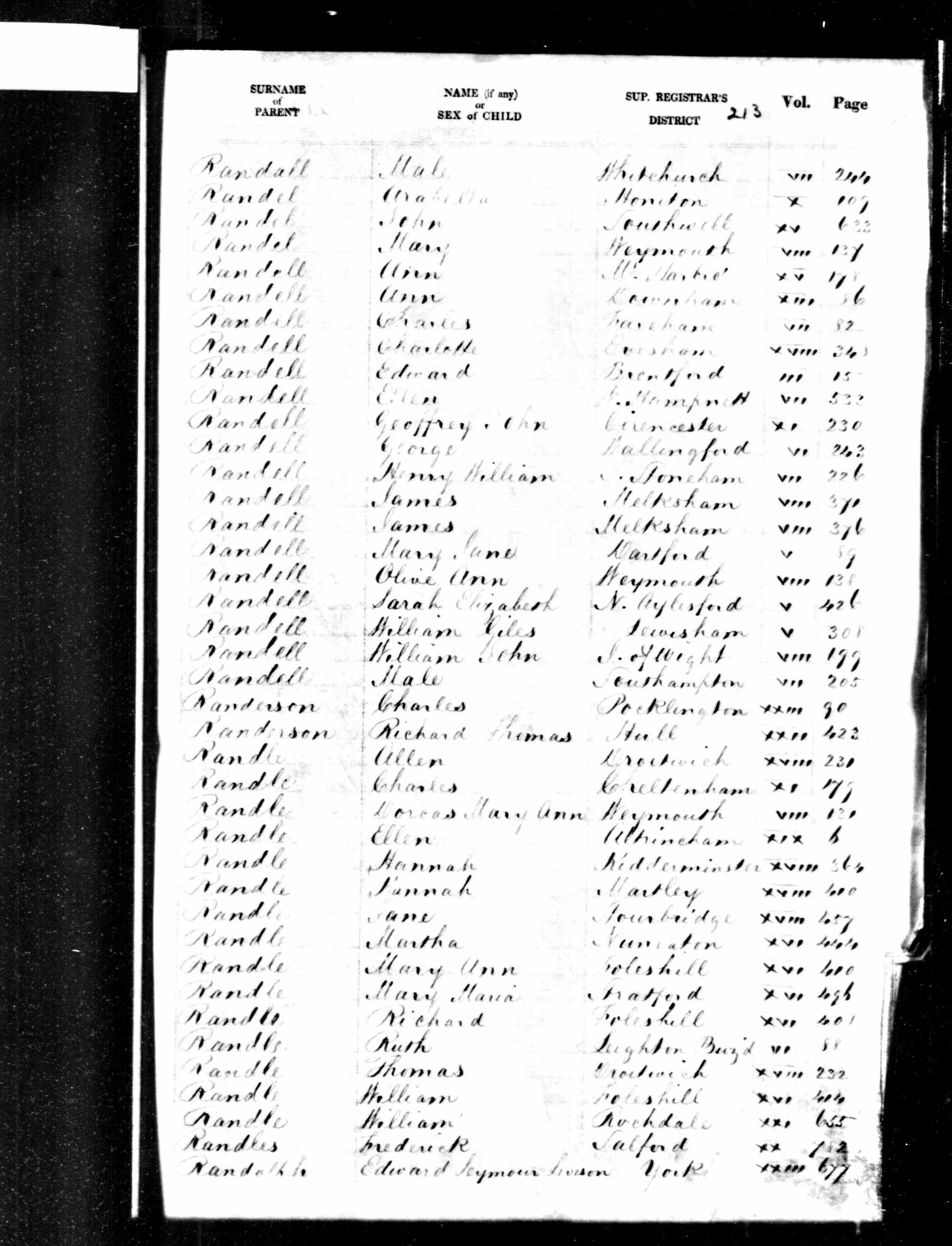 Birth of Geoffrey John Randell; Vol 11 page 231.