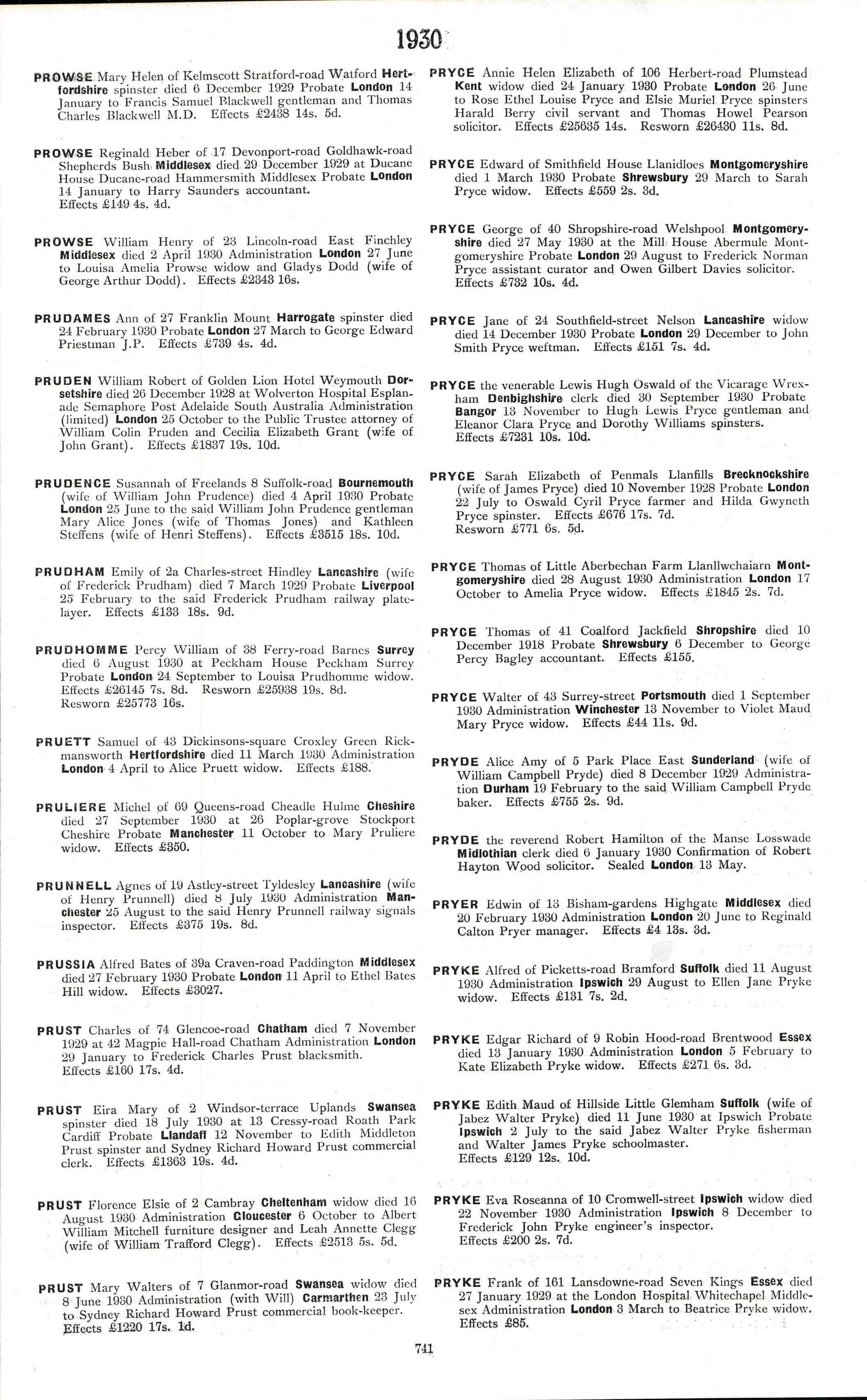 • Page: Death of Alfred Bates Prussia; Probate 11 Apri 1930, London